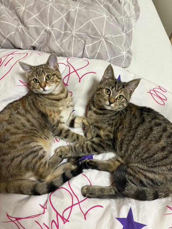 The girls are 7 months old. Very sweet and cuddly. They love each other and humans, super smart. Would be perfect for somebody who loves cuddly and active cats.